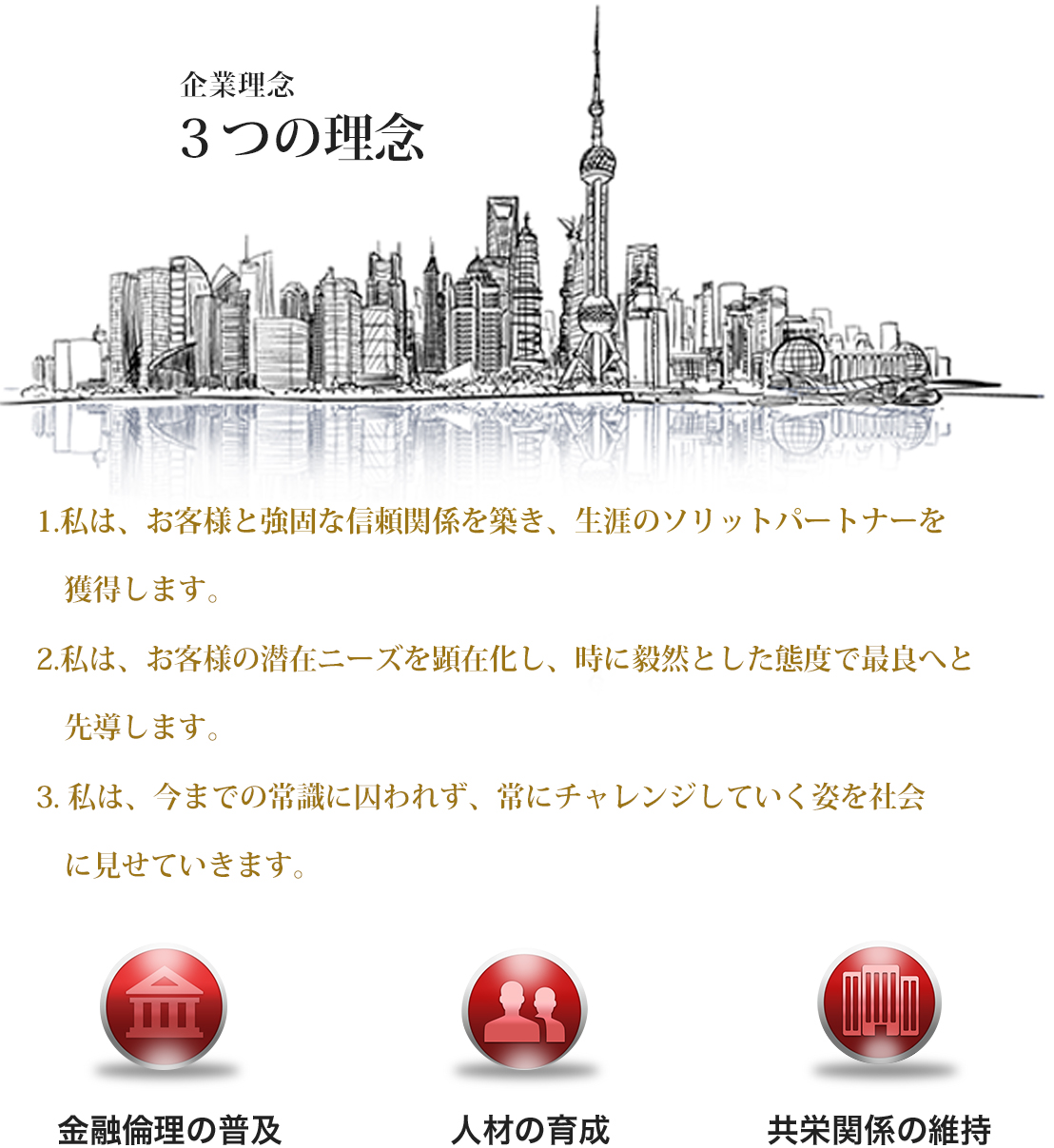 思いやること。誠実に共生の心を大事にし、利己を抑えることが全ての繁栄。